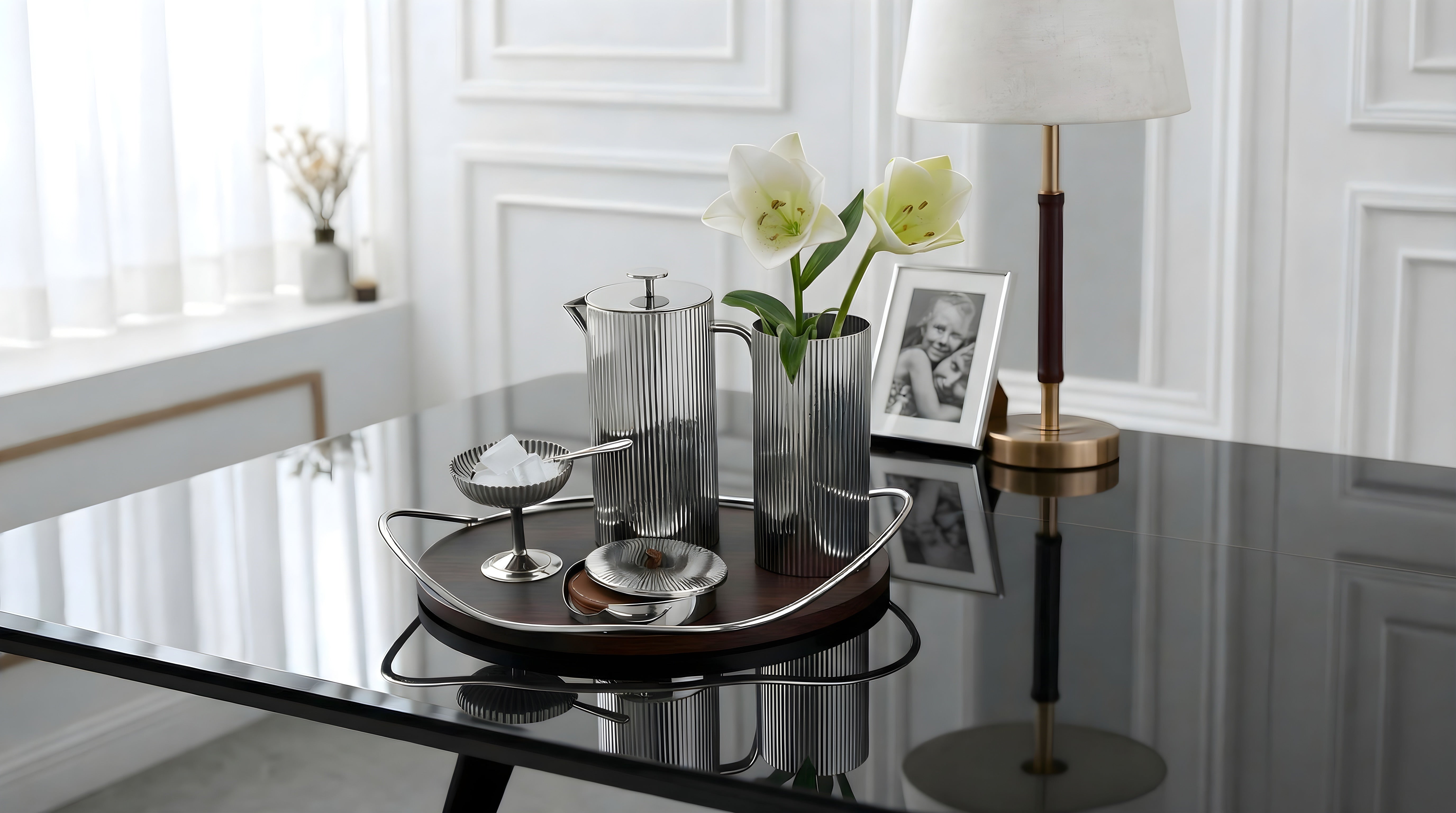 הרגע שבו הברק של נירוסטה פוגש את המרקם של עץ, או כשהאור נשבר על זכוכית וממלא את החלל ברוך.